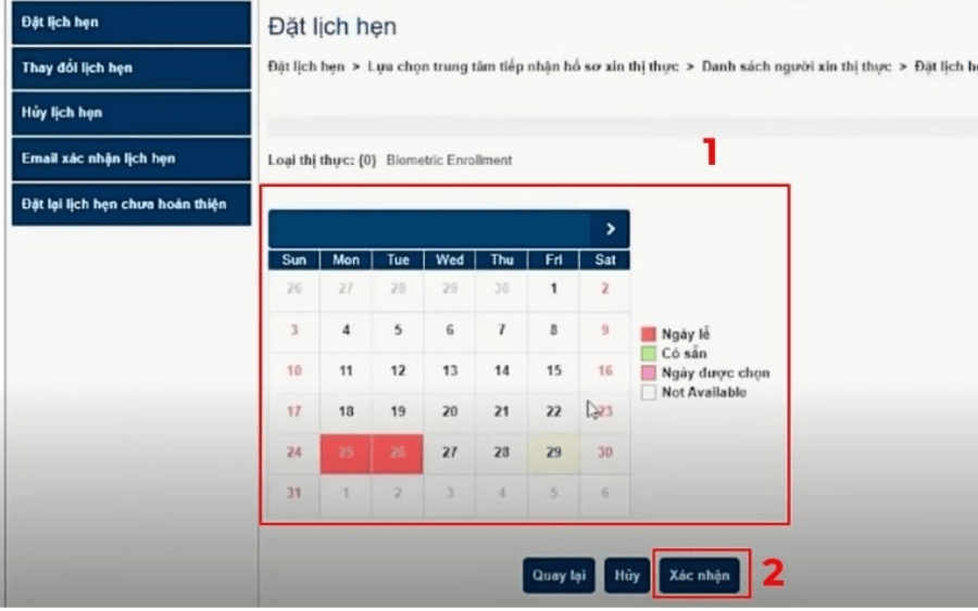 • Lịch hẹn bị đầy: Theo dõi thường xuyên trang VFS Global, vì hệ thống sẽ mở thêm suất trống khi có người hủy hoặc dời lịch.
