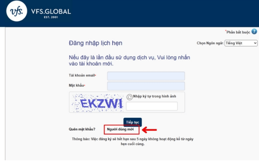 • Quên mật khẩu tài khoản: Sử dụng tính năng “Forgot Password” trên trang đăng nhập VFS để đặt lại mật khẩu qua email.