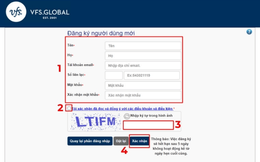 • Không nhận được email xác nhận: Kiểm tra thư mục Spam/Junk hoặc liên hệ trực tiếp với bộ phận hỗ trợ của VFS để được gửi lại thông tin.