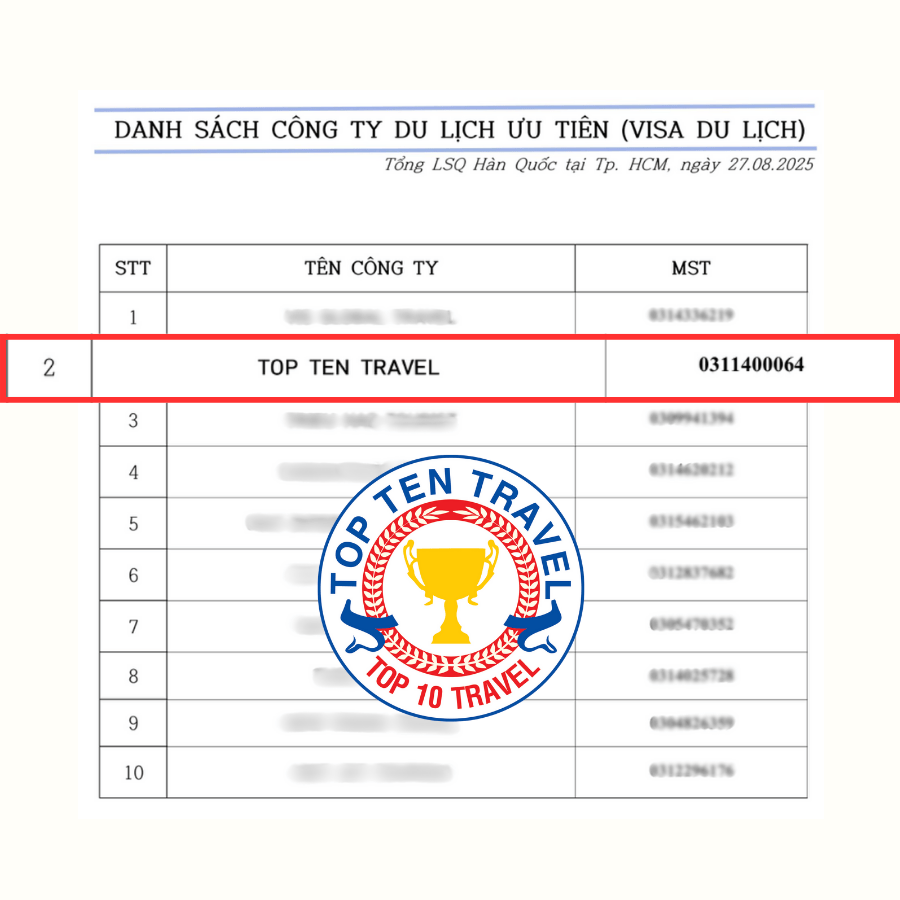 Hy vọng những thông tin trên sẽ là hành trang hữu ích giúp bạn tự tin hơn trong quá trình chuẩn bị hồ sơ xin Hàn Quốc. Nếu bạn đang tìm kiếm một đơn vị đồng hành uy tín và giàu kinh nghiệm, Visa Top Ten luôn sẵn sàng hỗ trợ bạn từ những bước đầu tiên cho đến khi nhận được kết quả cuối cùng.