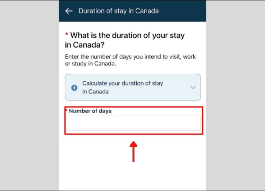 - Duration of stay in Canada: Thời gian dự kiến lưu trú tại Canada, tính bằng số ngày.