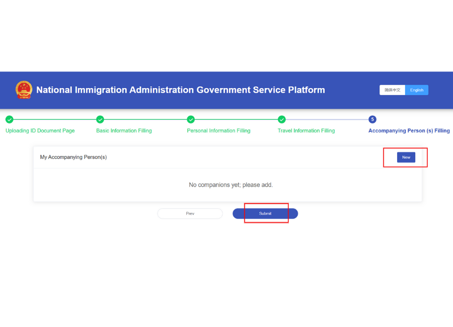 Nếu có người đi cùng thì bạn bấm vào New – điền thông tin người đi cùng vào, sau đó bấm Submit.