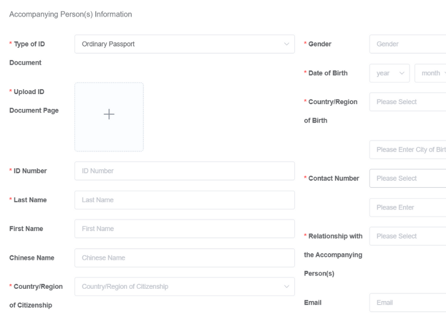 Lưu ý khi điền mục Accompanying Person(s) Filling.