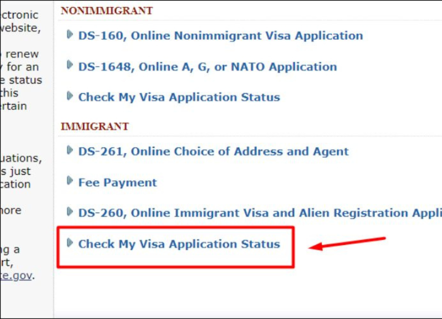 Chọn mục Check My Visa Application Status để tiến hành kiểm tra tình trạng hồ sơ xin visa.