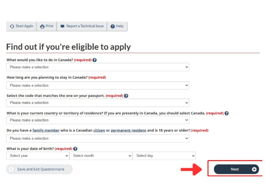 Trả lời các câu hỏi của hệ thống để xác định loại visa bạn cần xin và lệ phí bạn sẽ nộp là bao nhiêu.
